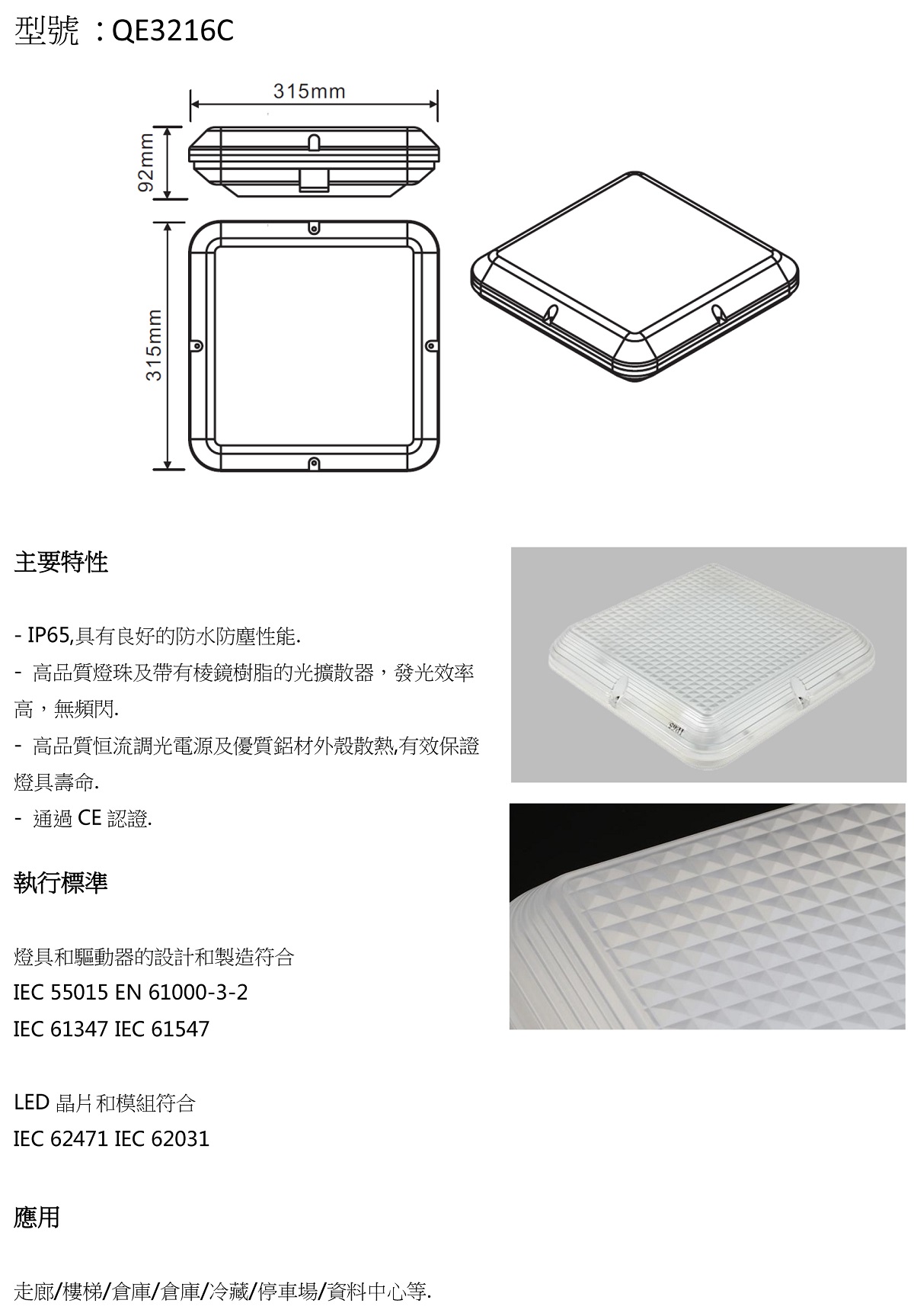 LED調光應急吸頂燈 QE系列
