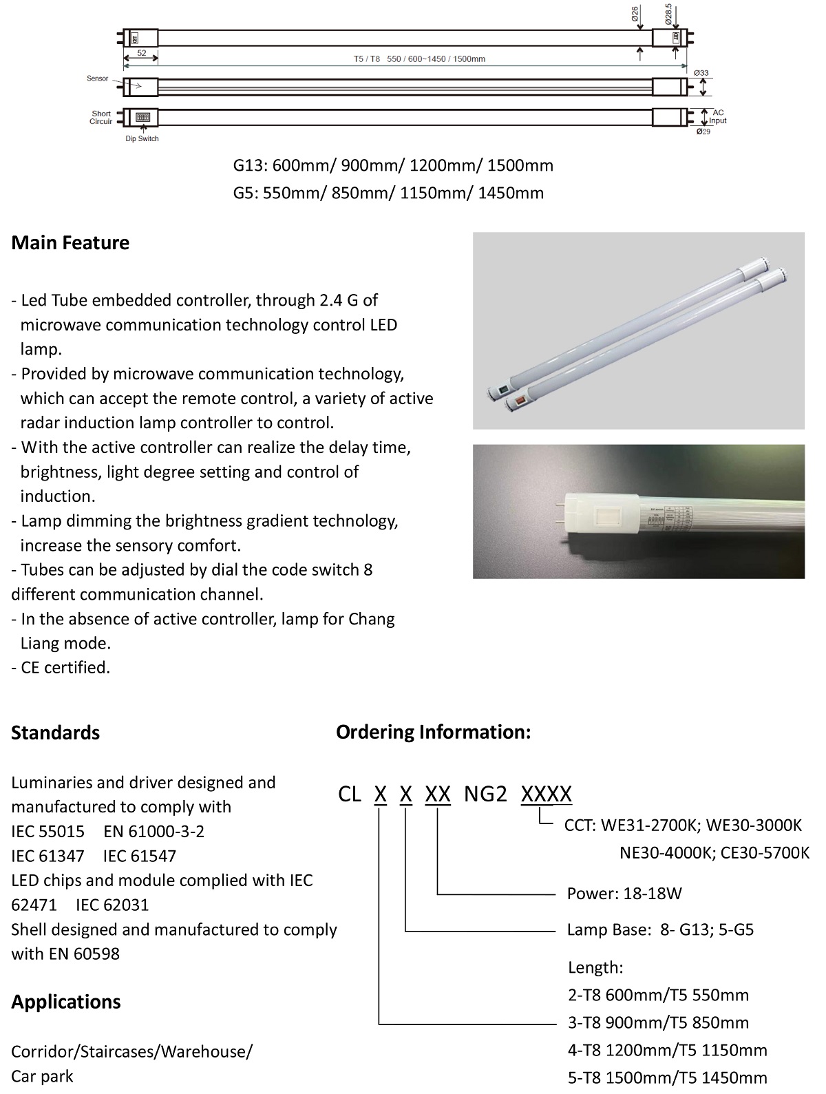 LED Intelligent Dimming Tube - Slave Tube NG2 series